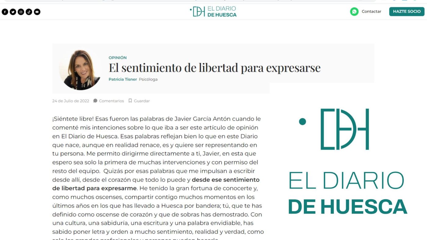 En http://www.eldiariodehuesca.com https://www.eldiariodehuesca.com/opinion/sientete-libre_201_102.html ¡Siéntete libre! Esas fueron las palabras de Javier García Antón cuando le comenté mis intenciones sobre lo que iba a ser este artículo de opinión en El Diario de Huesca. Esas palabras reflejan bien lo que en... Seguir leyendo →